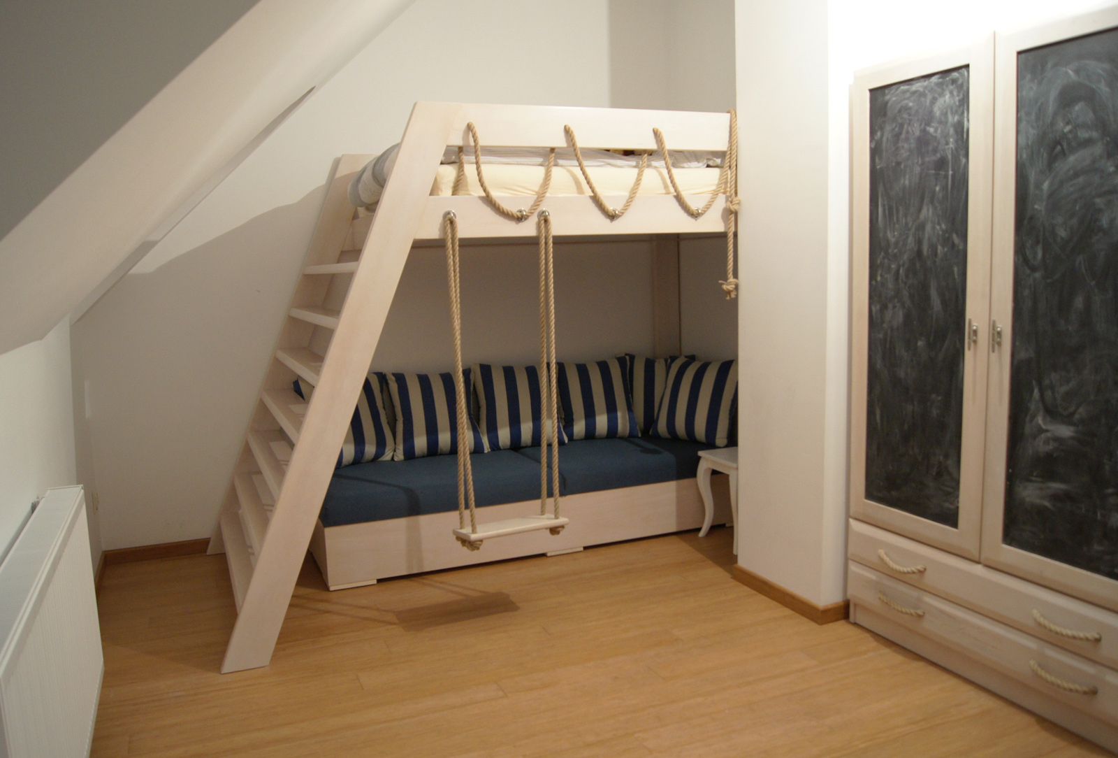 Dla wyjątkowego dziecka wyjątkowy pokój z dopasowanym łóżkiem piętrowym i szafą-tablicą kredową.